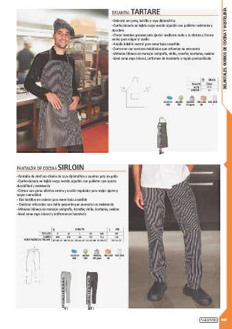 -Contornos con costuras redobladas que refuerzan su estructura. DELANTALES, GORROS DE COCINA Y HOSTELERÍA