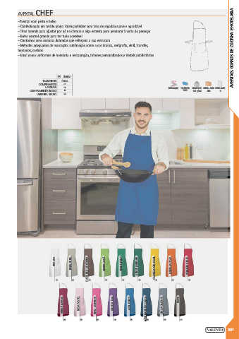 - Métodos adequados de marcação: sublimação sobre a cor branca, serigrafia, vinil, transfer, AVENTAIS, GORROS DE COZINHA E HOTELARIA